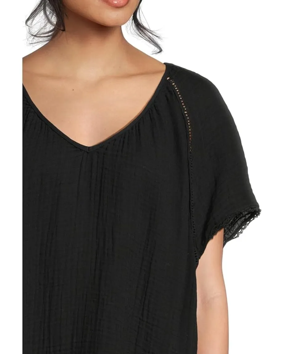 - Add a touch of elegance to your basic, everyday style wearing Michael Stars™ Sky Mini Dress. The pull-on style dress features a scoop neckline, drop shoulders, flutter sleeves, and pockets on the side for added functionality. The relaxed-fit flowy dress comes in a gauze fabric and is intended to hit above the knees.