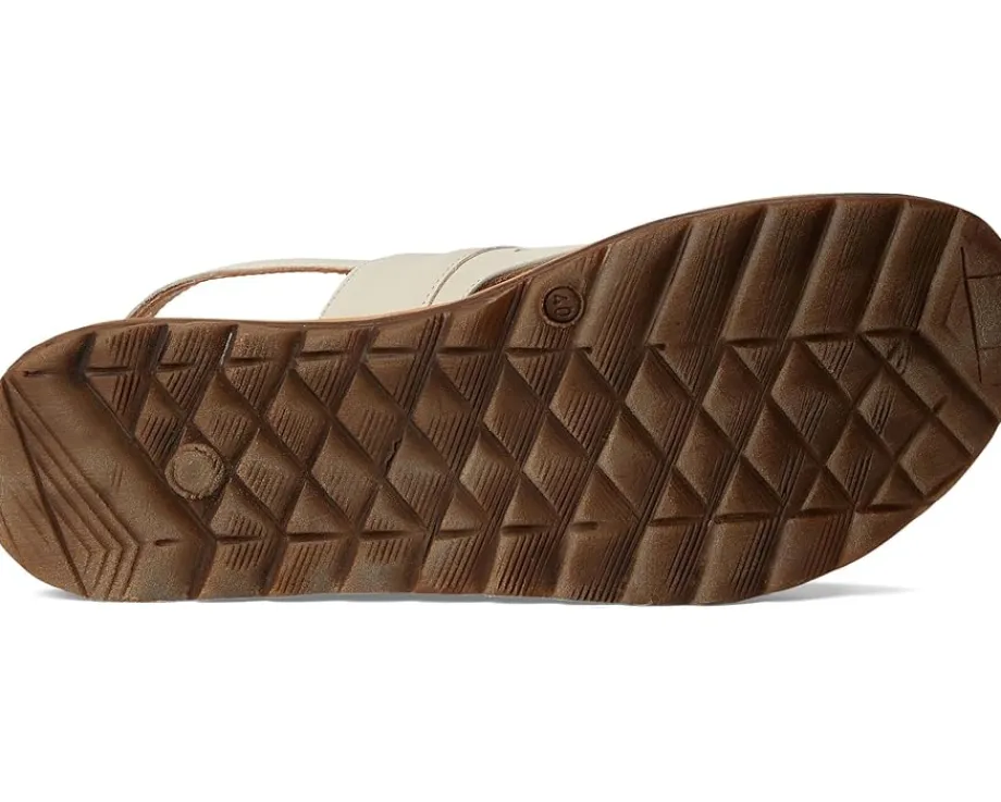 - A unique geometric cutout design offers the Miz Mooz® Felena sandal a chic yet sophisticated look. Designed with a buckle adjustable slingback strap closure, this peep toe style features leather upper and lining construction for all-day comfort.