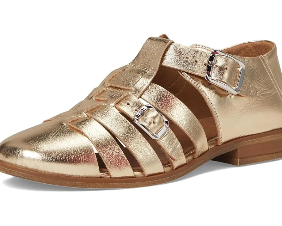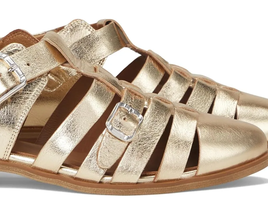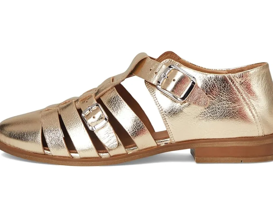 - Revamp your basic looks by complementing outfits with the Miz Mooz® Ivanna Sandals in a stylish low-top fisherman silhouette. The modern almond toe sandals come with a metallic leather upper with two trendy buckles, a leather lining, and a cushioned ethylene vinyl acetate insole.