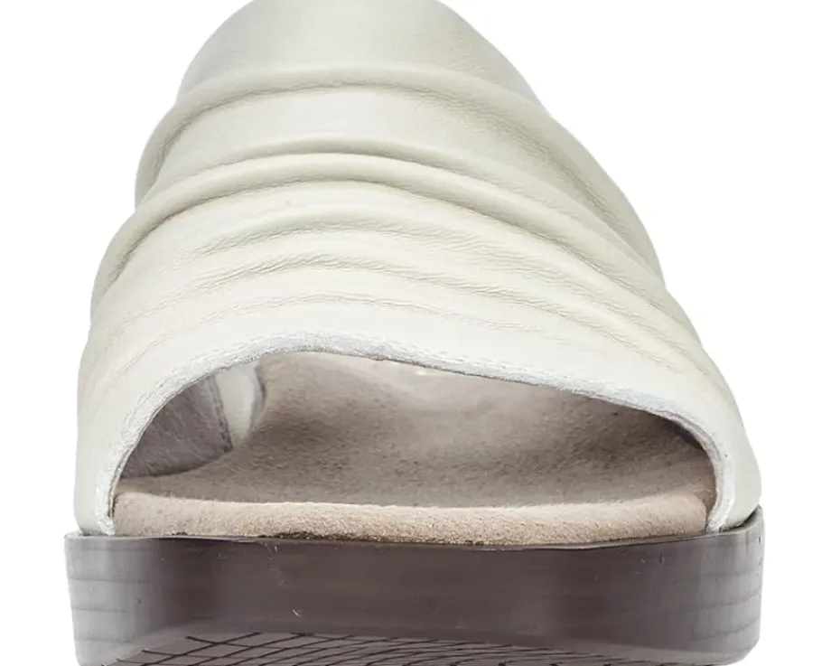 - Enjoy this slip on sandal with upper ruching and wide band made from soft leather.