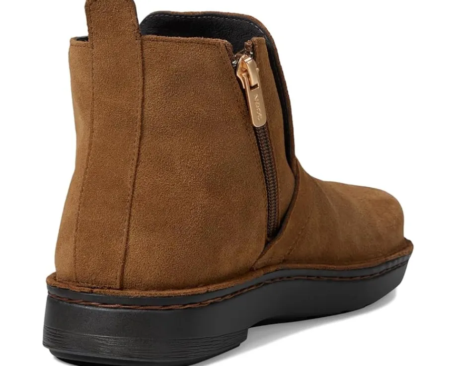 - The Naot® Kolmer boots are the perfect bootie that gives extreme comfort and stands out with a chic front buckle. These boots feature a removable, anatomic cork and latex footbed that is wrapped in pampering suede and molds to the shape of the foot with wear. The suede upper of these boots features a zippered side closure for easy wear while the leather lining offers added comfort. APMA-accepted, these ankle boots are a part of the Utopia collection.