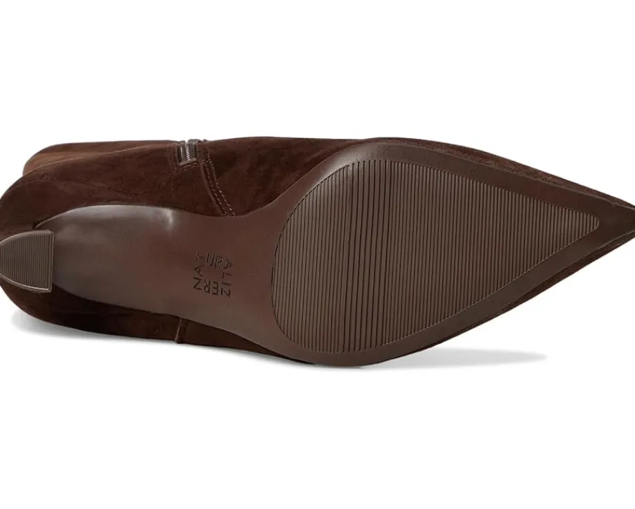 - The Naturalizer® Emily Knee High Boots are dress boots with a curved topline that features western-inspired stitching. Their leather upper is styled with a pointed toe silhouette and architectural stiletto heels. These heeled boots are crafted with built-in arch support and a molded heel cup for long-lasting comfort and support. The REZORB responsive cushioning provides shock absorption + impact protection for sneaker-level comfort in heels. These knee-high boots are designed with a sculpted insole and a breathable lining. They feature a full-length zippered side closure and hidden gore for extra flexibility. Their Contour+ Comfort technology offers a premium fit and an all-day comfort experience.