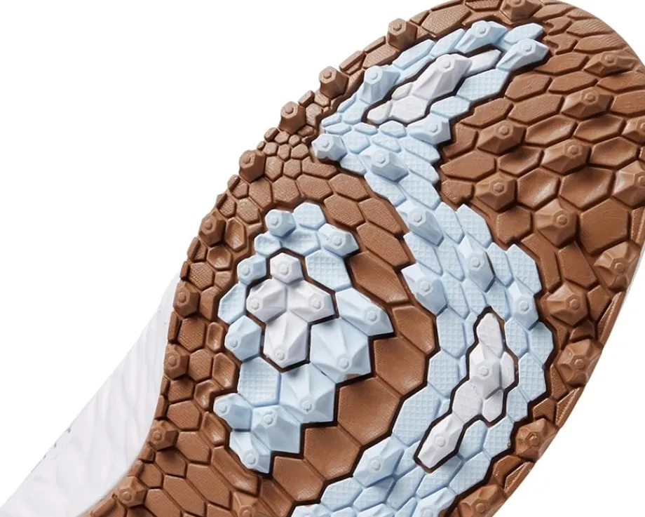 - Smart rubber spikeless outsole has pressure mapping colors to highlight key performance zones.