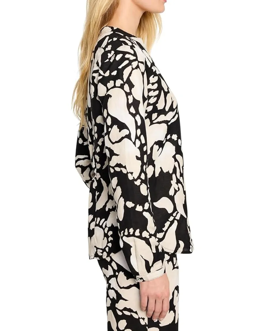 - Bring an elevated touch to everyday style with this NIC+ZOE™ Petite Evening Petal Woven Shirt featuring always-on-trend linen. Crafted from a new, refined linen blend that features a luxe weight while showcasing vibrant prints beautifully. The silhouette features a flattering V-neckline with a banded collar, long sleeves with buttoned cuffs, and a back elasticized waist for a gently shaped silhouette.