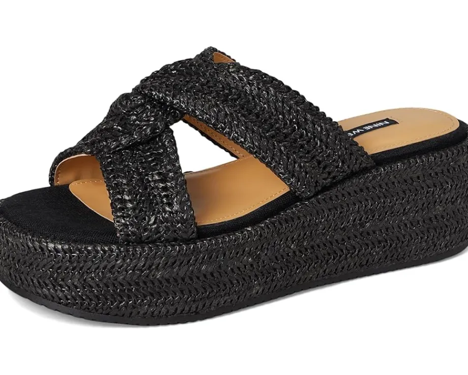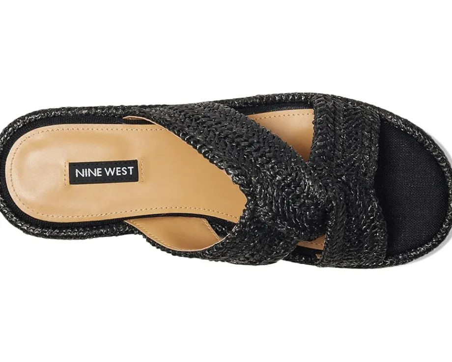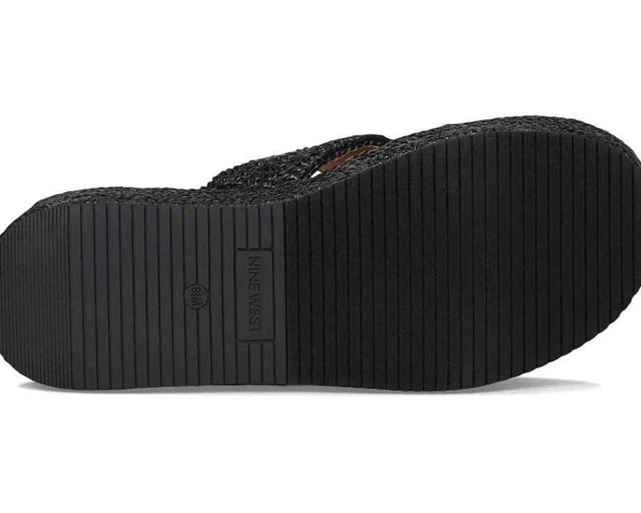 - Step out in style wearing the Nine West® Cerry platform sandals. The slip-on footwear features woven detailing and high wedge heels.