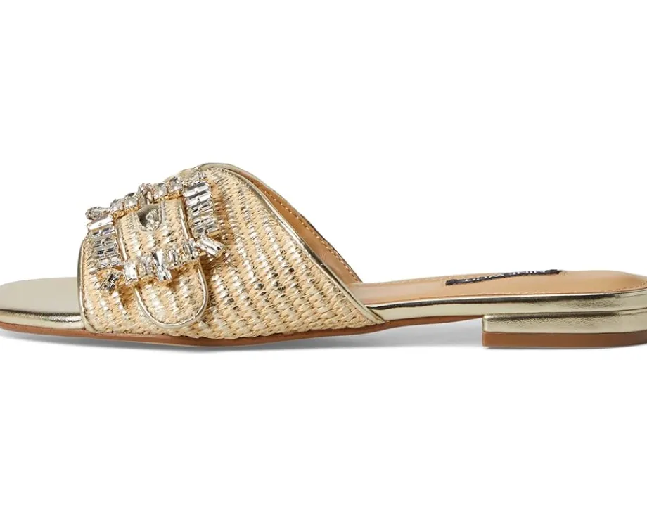 - Fall in love choosing the Nine West® Laniey flat sandals. It features a modern square toe design, an embellished buckle on the upper, and a slip-on silhouette. these sandals are anything but boring! Founded in 1978, Nine West empowers women to take on the world in style, from day to night.