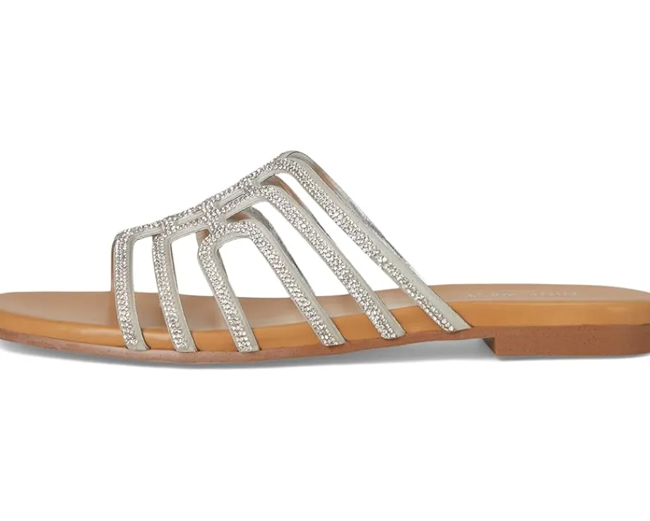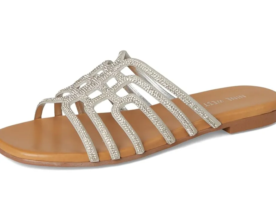- Complete your look in the Nine West® Timy dress flats. They feature a modern square toe shape, strappy silhouette, and embellishments on the straps. These slide sandals are made of a polyurethane upper, cushioned footbed, and polyurethane lining. These flat sandals are anything but boring and sure to impress.