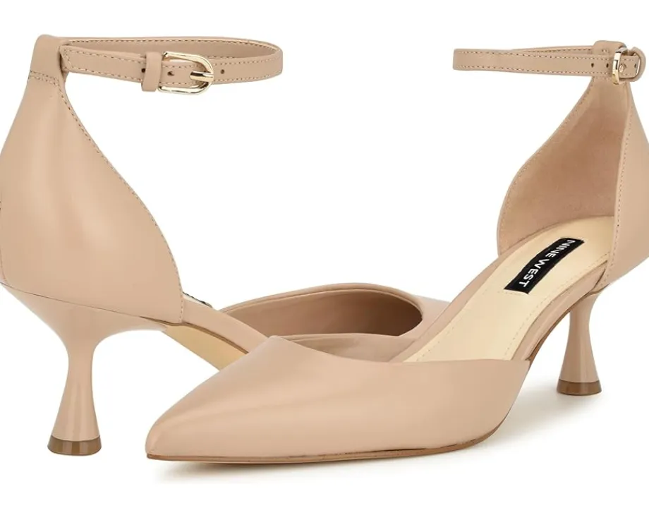 - Look gorgeous in a metallic sheen wearing Nine West® Racha heels. Crafted from faux leather upper, the footwear has man-made lining, and leather insole. A pointy toe, adjustable ankle strap with buckle closure, and tapered kitten heel empowers you to take on the world.