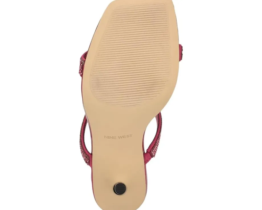 - Keep your style game sassy with Nine West® Yogi slip-on sandals that are perfected to empower women to take on the world in style, from day to night. These comfortable sandals are featured in faux suede upper with polyurethane lining and a rubber insole. With a modern square toe design and embellished double straps, they make a gorgeous wardrobe staple.