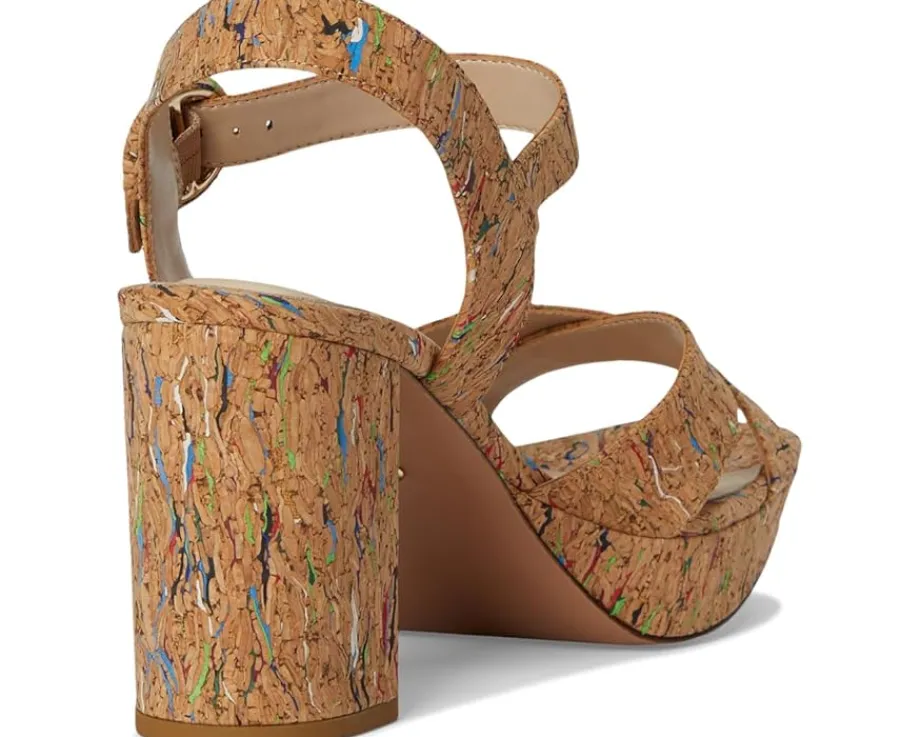 - Multi colored cork upper straps and platform and heel for a fun summer look. Adjustable ankle strap for fit. Pair with your favorite denim or skirt for an effortlessly chic look.