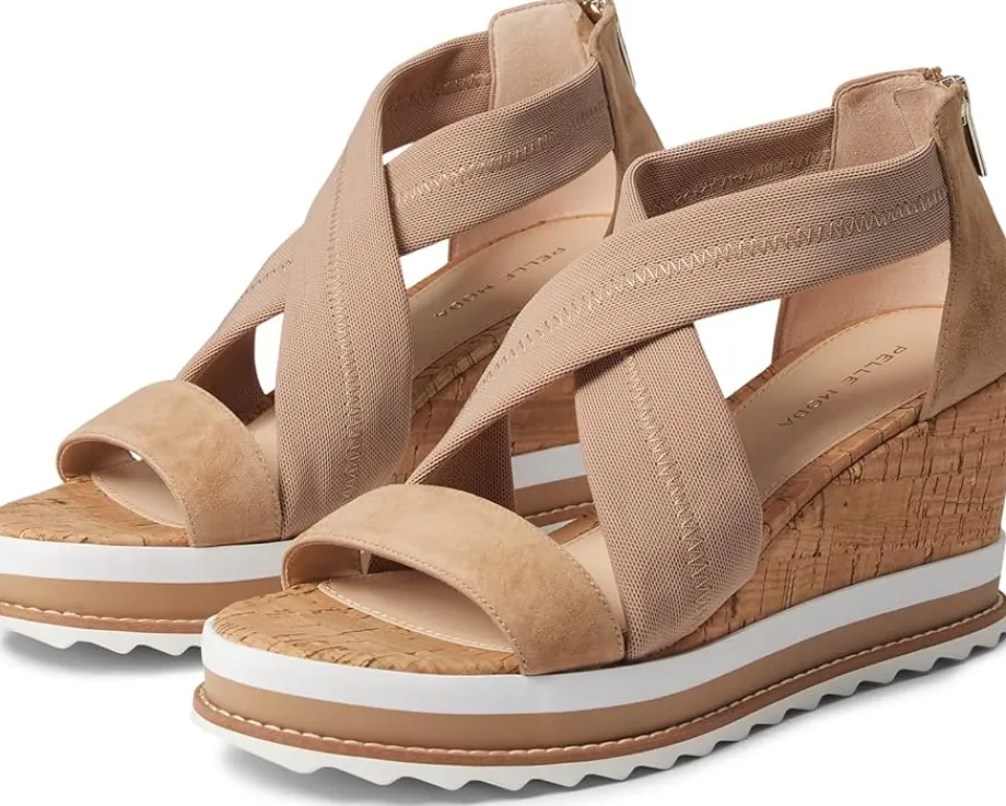 - Elevate your chic style in the Pelle Moda® Medina shoes. These shoes feature a crisscross strappy detail with a back zipper closure in a round, open toe silhouette and wedge heel.