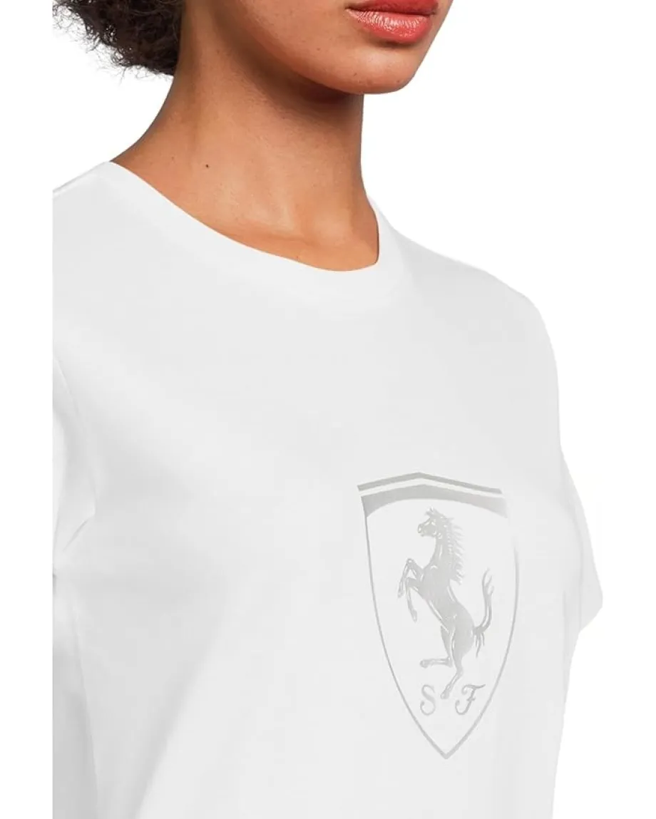 - Show your passion for racing with this relaxed fit PUMA® Scuderia Ferrari Tonal Shield T-shirt, blending PUMA’s athletic style with the prestige of Scuderia Ferrari. It is styled with short sleeves, a crew neckline, and a straight hem. Crafted from premium fabric for maximum comfort and durability, this crew-neck tee offers a classic fit that’s neither too tight nor too loose. This casual tee is made with at least 20% recycled material. Easy to care for and perfect for everyday wear, it blends athletic style with the prestige of Scuderia Ferrari.
