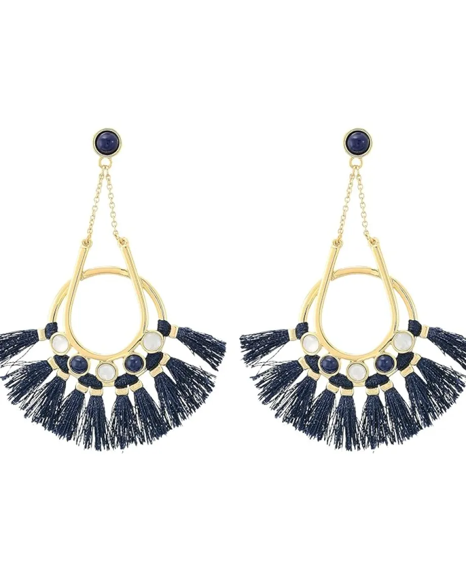 - Chandelier earrings with colorful tassel accents.