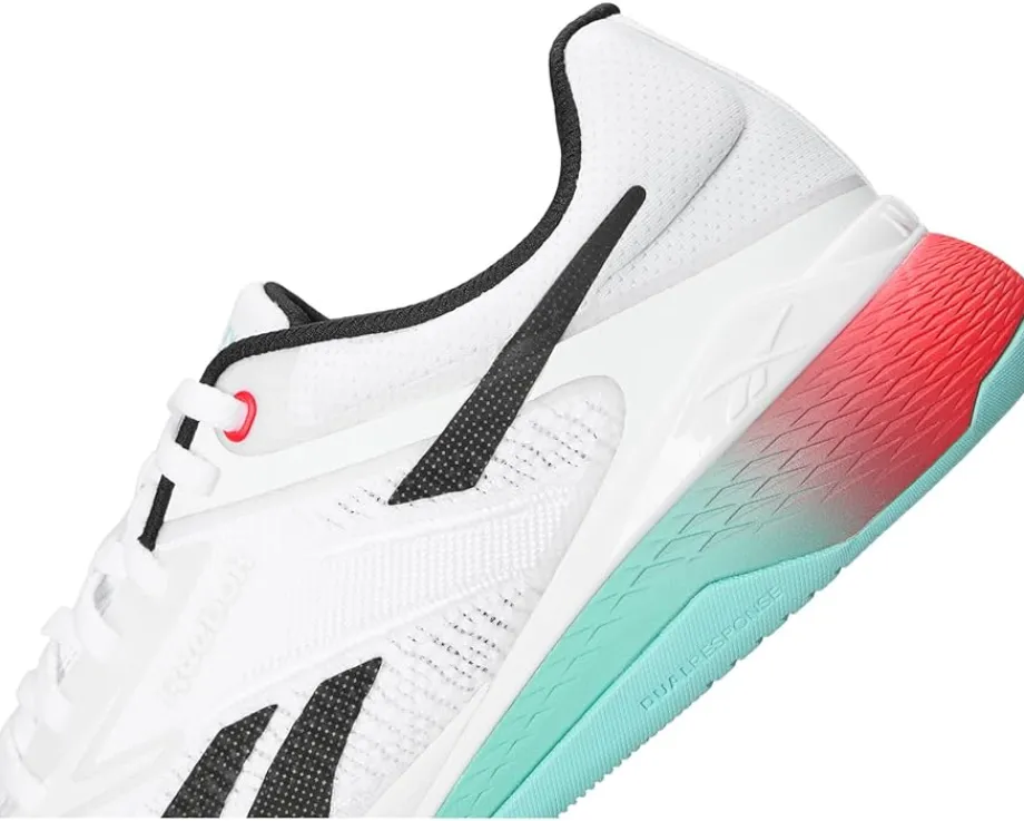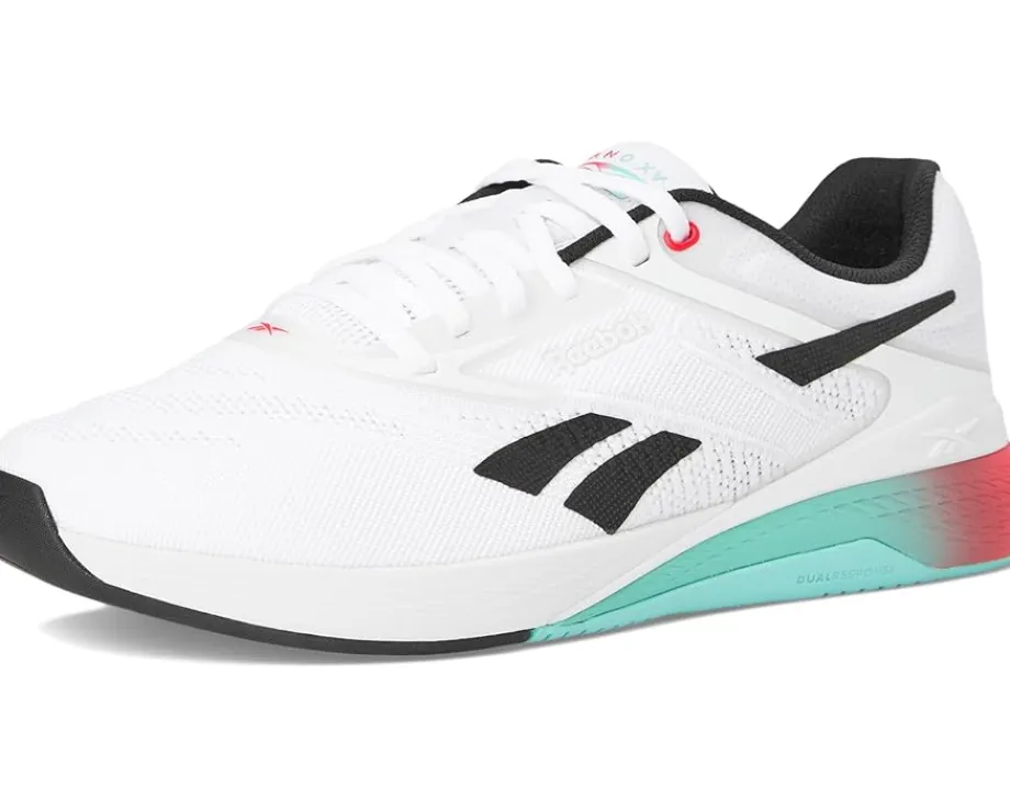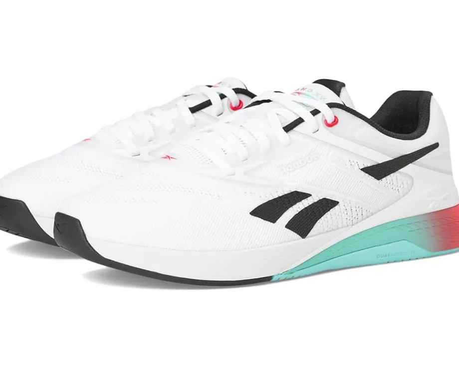 - Get ready to crush your fitness goals and move with confidence – the Nano X5 by Reebok® is your perfect workout partner! Engineered for versatility, these athletic shoes for men and women are built to jump, climb, and conquer any workout with unwavering confidence. Featuring a premium FLEXWEAVE polyester upper, they offer a 360-degree locked-in fit for superior comfort and stability, while the decoupled METASPLIT rubber outsole enhances flexibility and runnability. Designed for both performance and style, the Lift and Run Chassis system optimizes agility, speed, and endurance. With responsive cushioning, these shoes deliver the lightweight feel of running shoes while maintaining the stability of training shoes.