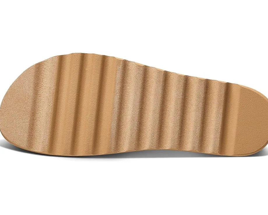 - Let’s be a little cagey, as in straps that hug your foot all the way around, including a comfy elastic backstrap. The Reef® Cushion Rem Hi features our signature cushiony, bouncy footbed, with ultimate arch support, heel cupping, and a genuine cork topsheet. Best of all, these sandal’s straps are made from 100% post-consumer plastic material, so you can feel good about them in every way. A layered, on-trend sole takes these platform sandals up a notch, so to speak. Cute, comfy, and up for anything.