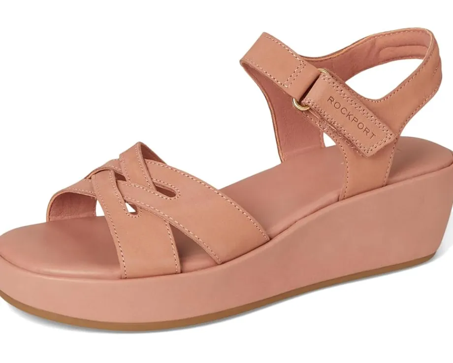 - A staple for any wardrobe, the Rockport® Amira wedge sandals combine style and comfort. It offers crisscross straps, an open toe, and a cushioned insole, to keep you on your feet. Featuring truTECH® technology for lightweight shock absorption. The sandals feature leather upper, polyester lining, and foam footbed.