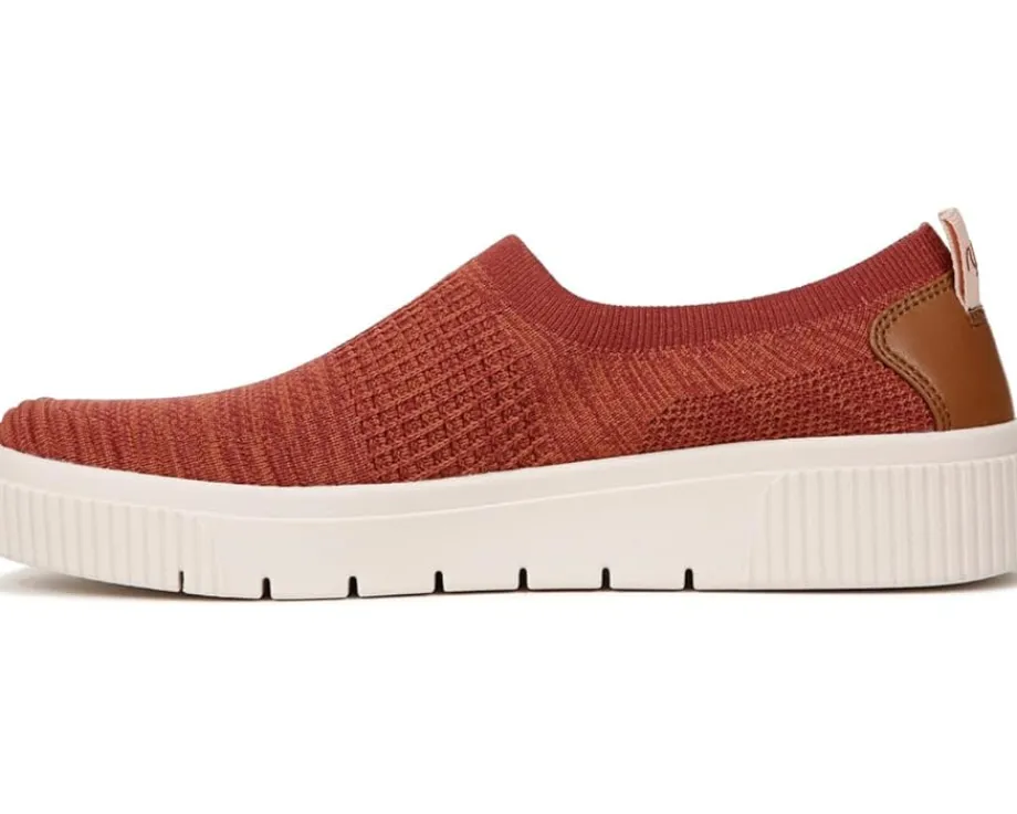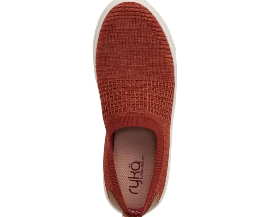 - Ideal for everyday wear, the Ryka® Vista Slip-On sneakers are designed to fit a woman’s unique foot shape and muscle movement. Featuring softer foot cushioning, roomier toe, and a narrow heel, these sneaker shoes make a great addition to your footwear collection. Their cushioned EVA heel cup surrounds your foot for superior comfort and performance. With their slip-on style, they offer easy on and off. Walk with comfort and style by wearing these comfy sneakers.