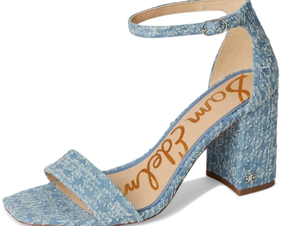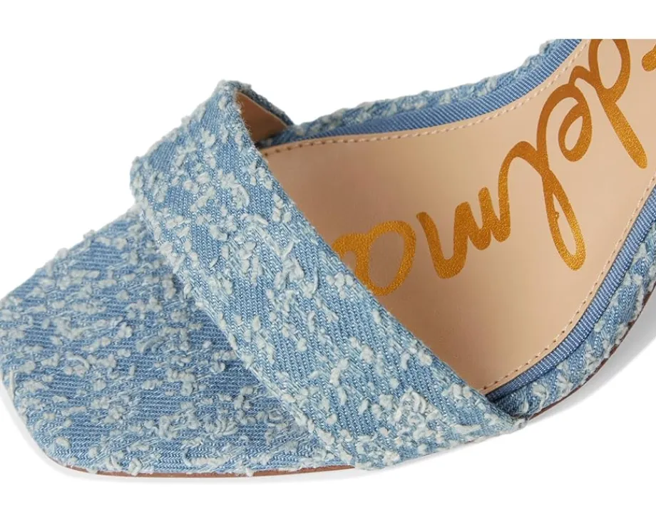 - Dance the night away in the metallic Sam Edelman® Daniella heels featuring a leather upper with an open, square-toe silhouette on a block heel.