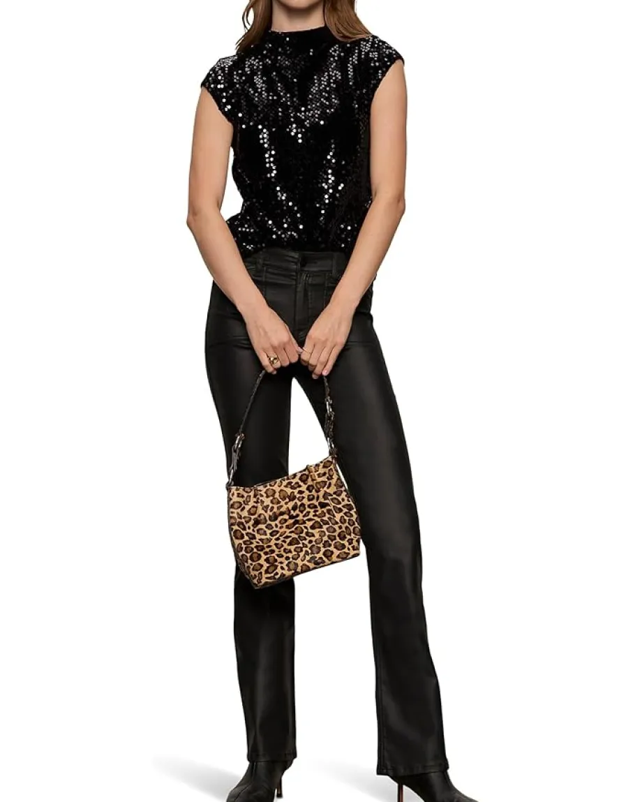 - Dazzle at your next outing in the Sanctuary™ Funnel Neck Sequin Top. Featuring a funnel neckline with cap sleeves, back zipper closure, straight hemline, and allover sequin detailing.