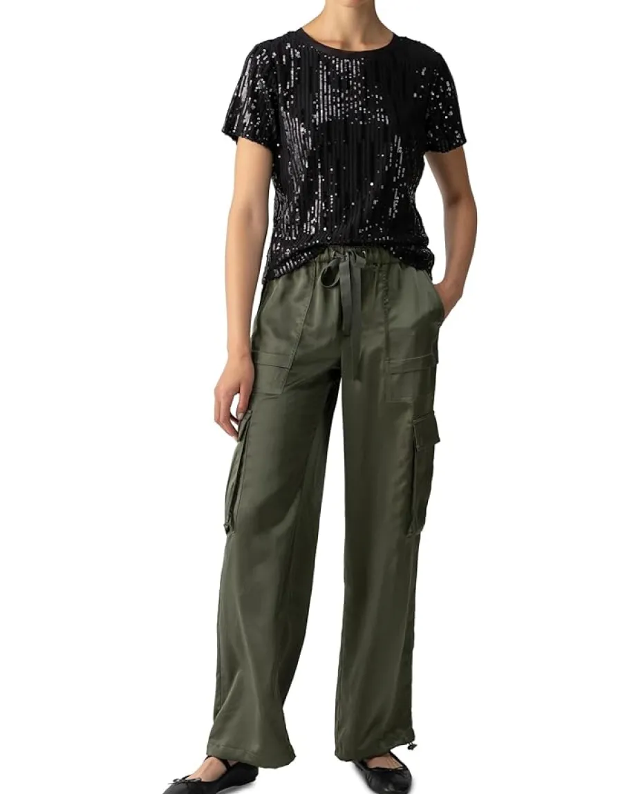 - Stand out effortlessly wearing the Sanctuary™ Sequin Perfect Tee! This classic-fit top features a dazzling sequin design that adds a touch of glam to any outfit. With its crew neck and short sleeves, it offers a versatile look that’s perfect for any occasion. Fully lined for comfort, this tee ensures you sparkle without sacrificing ease. Dress it up for a night out or keep it chic for a casual day-either way, you’ll radiate confidence and style.