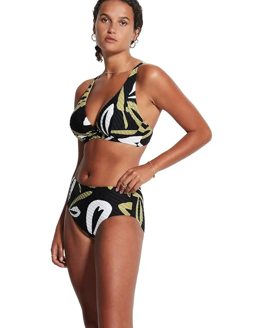 - The Seafolly® Eco Laguna DD Tri Bra features an artistically simple modern floral with strong brushstrokes of olive and white, keeping you looking dynamic by the water.