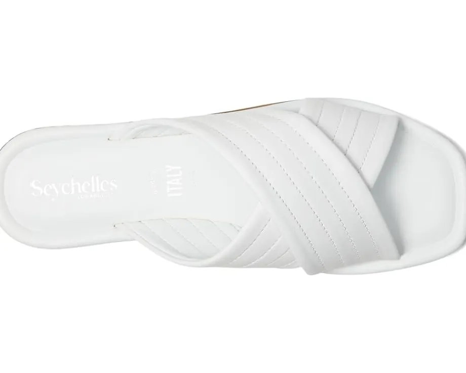 - The Seychelles® Courage Leather Slide Sandal will keep your feet comfortably chic whether you are vacationing by the sea or just shopping at your local farmer’s market. These cross band square toe slides will quickly become your warm weather favorite.