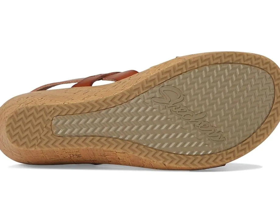 - The SKECHERS® Beverlee – Cherished Aura is built for motion. This strappy vegan wedge sandal features an embroidered and laser-cut synthetic upper with an adjustable back strap and a cushioned Luxe Foam® footbed. It comes with open round toe, wedge heel, and slip-on style.