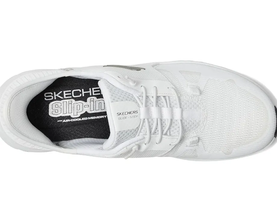 - Designed with an exclusive Heel Pillow™ for added support, the SKECHERS® Glide Step Pro Hands Free Slip Ins are made with an engineered knit mesh upper with stretch laces for a secure fit. The Skechers Air-Cooled Memory Foam® insole provides pressure relief, instant comfort, and breathability. Featuring a Glide-Step® geometric midsole that delivers natural momentum with every step, these lace-up sneakers are machine washable and are crafted with 100% vegan materials.