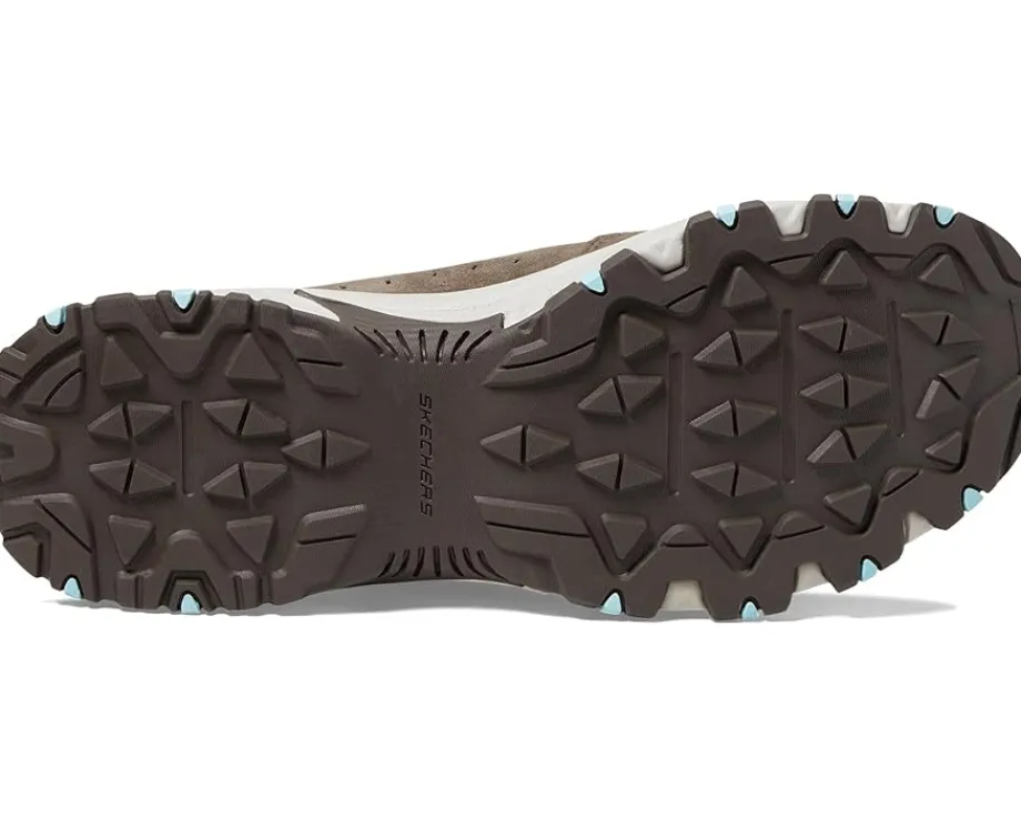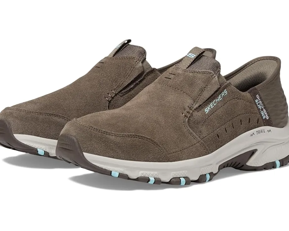 - Blaze the trails in step-in and go convenience with SKECHERS Hillcrest – Sunapee Hands Free Slip-Ins. Along with the exclusive heel pillow™, this water-repellent trail hiking style features a genuine suede upper with a skechers memory foam™ cushioned comfort insole. The round toe design and slip-on style allows an an easy fit