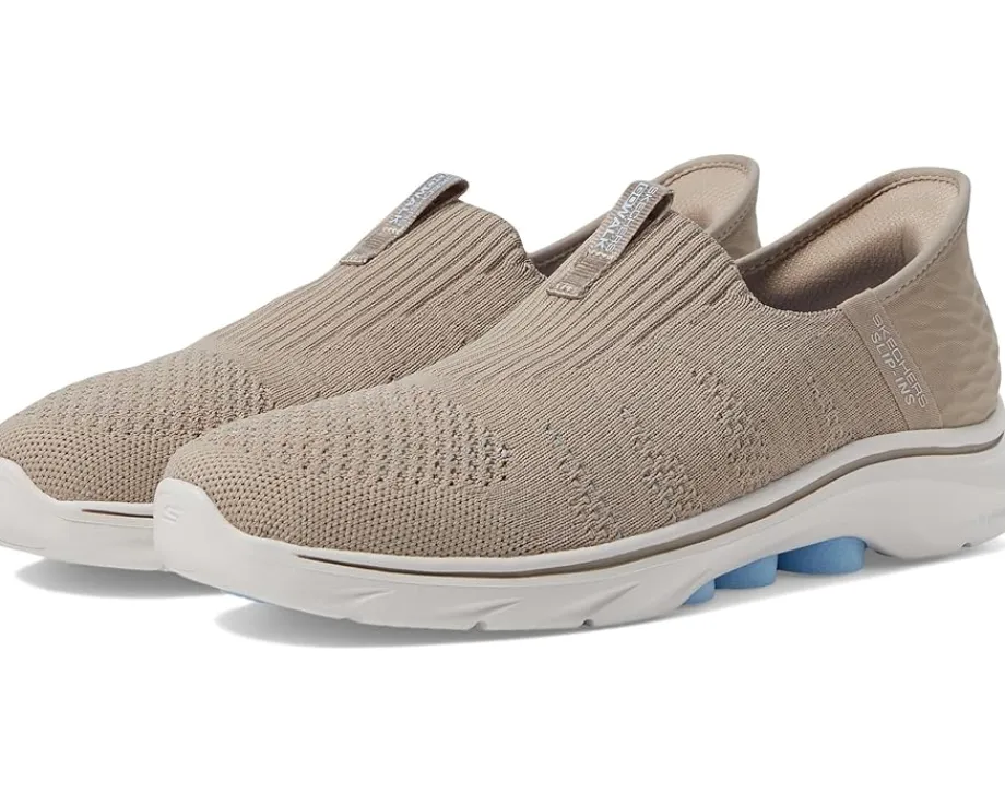 - Run in comfort wearing the SKECHERS® Performance Go Walk 7 City Lights Hands Free Slip-Ins. Crafted from synthetic upper, this pair of slip-on shoes features round toe design. Made with responsive ultra go cushioning with hyper pillar comfort technology.