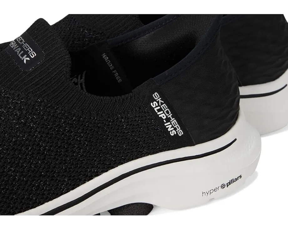 - Accentuate a tough performance on the field wearing SKECHERS® Performance Go Walk 7 Springtime Hands Free Slip-Ins that are crafed with stretch knit upper for a custom-like fit and high-rebound ultra-lightweight hyper pillar technology for added support. The sneakers feature a round toe shape with signature branding on the upper.