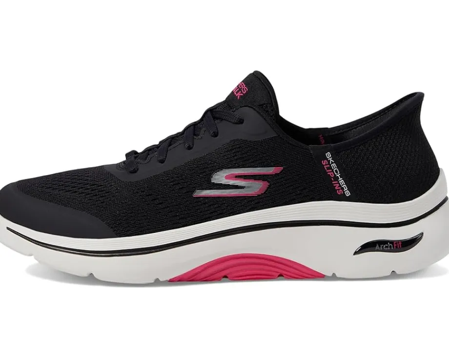 - Walk into effortless style and comfort donning the Skechers® Performance Go Walk® Arch Fit 2.0 Valencia Hands Free Slip-Ins. The mesh upper and fabric lining ensure breathability, while the lace-up closure offers a secure fit. Featuring an EVA outsole and exclusive Heel Pillow™, enjoy podiatrist-certified arch support insole and lightweight ULTRA GO® cushioning for unmatched comfort and stability.