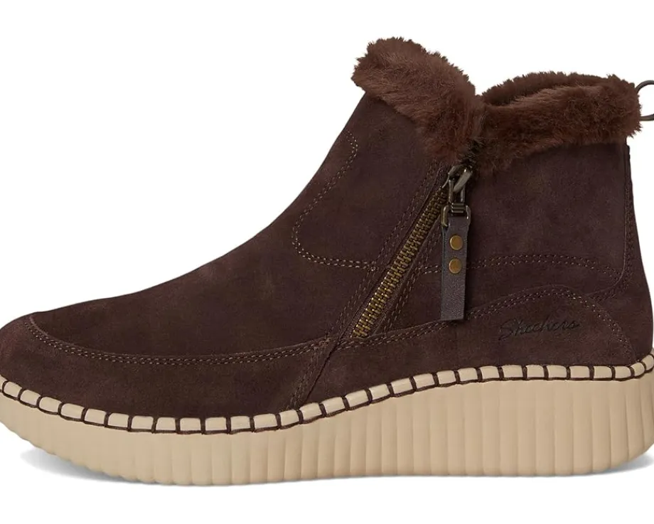 - Stay warm all chilly season in feet-loving comfort with the SKECHERS® Wilshire Blvd – Fresh Zip boots. These ankle-high boots feature a suede upper with faux fur lining, zippered side closure, and a Skechers air-cooled memory foam® cushioned insole. The upper of these boots is treated with 3M® Scotchgard® to resist water and stains. These heeled boots feature a Relaxed Fit® for a roomy comfort fit at the toe and forefoot.