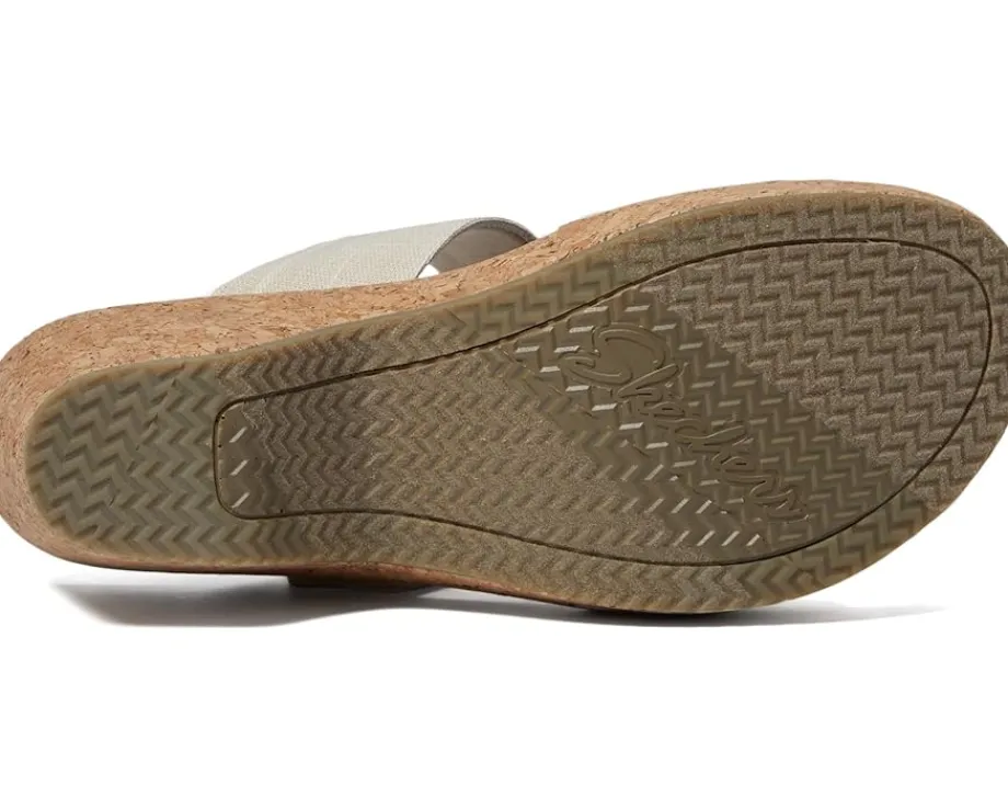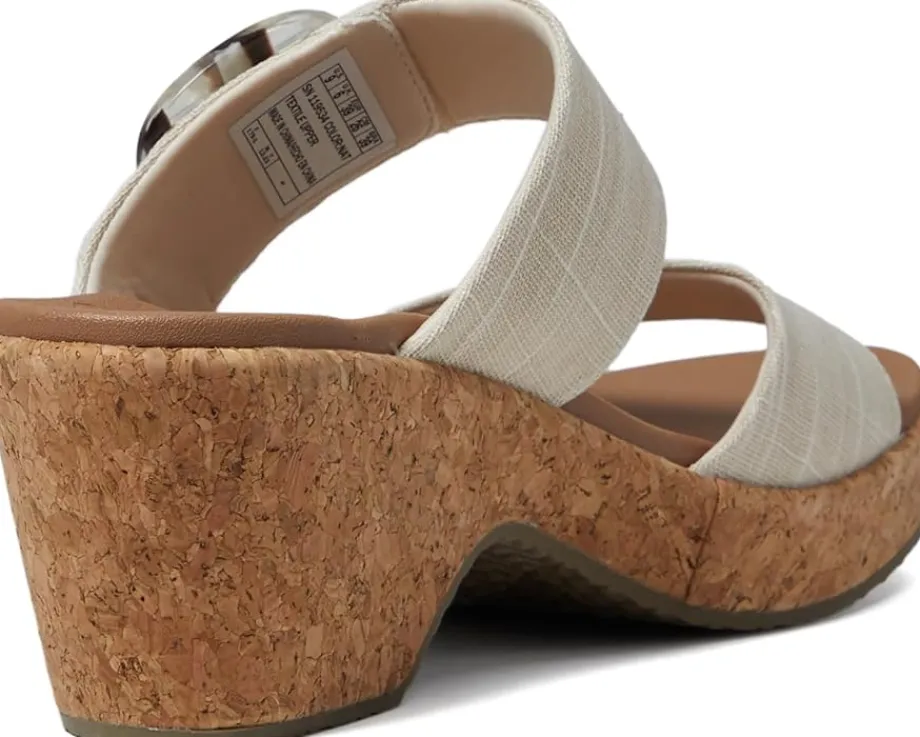 - Give your casual looks a stylish update wearing the SKECHERS® Brystol Sandals that are crafted with vegan materials and feature double band slides with adjustable buckle. The sandals are crafted with a linen canvas upper, fabric lining, luxe foam® cushioned comfort footbed, and cork wrapped midsole.