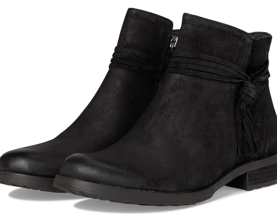 - Discover modern western flair with the effortlessly chic Sofft® Blake bootie! Designed with a western-influenced silhouette, this ankle-high essential brings rugged charm and everyday versatility to your wardrobe. Crafted with a premium waterproof suede and leather upper, it ensures style that stands up to the elements, while the supple leather lining adds all-day comfort. The round toe keeps the look classic, while the sturdy block heel offers a confident lift without sacrificing stability. An inside zippered closure makes slipping in and out a breeze, while the flexible rubber outsole and cushioned EVA insole provide superior comfort and traction with every step.