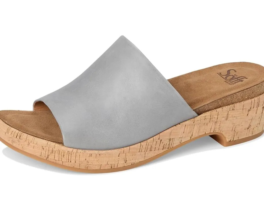 - Comfortable and chic, the Sofft® Cass Sandals let you enjoy every walk you take. The slip-on style heels are carfted with a soft leather upper, breathable leather lining, and a padded padded cork suede foam footbed. The open round toe shape and cork-wrapped platform heel adds a stunning detail to the look.