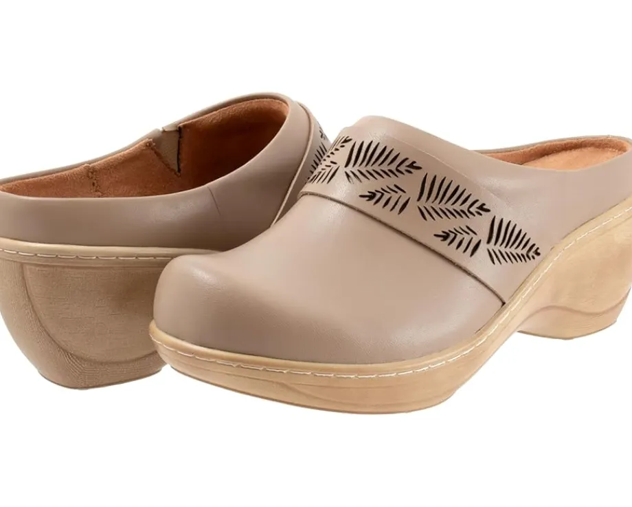 - Enhance your style wearing the SoftWalk® Melita, a classic clog embodying timeless elegance. Crafted from soft leather upper with a wide band design, it boasts slip-resistant rubber outsoles for stability. Enjoy comfort all day with a cushioned footbed and arch support, while breathable leather linings keep feet cool.