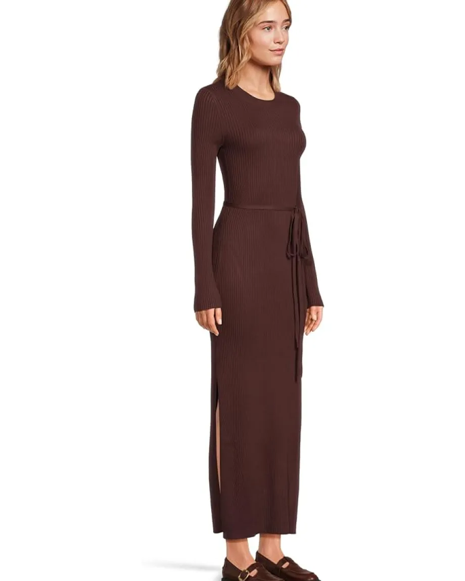 - The Splendid® Georgie Maxi Sweater Dress blends cozy comfort with understated sophistication, thanks to its clean silhouette, flattering tie waist, and soft ribbed texture. It is styled with a crew neckline, a side slit, and a straight hem. Made from the brand’s signature Cashblend fabric, a soft blend with a touch of cashmere, this maxi dress is perfect for dressing up or down, all season long. The long sleeves and pull-on ease make it a no-fuss favorite for day-to-night dressing.