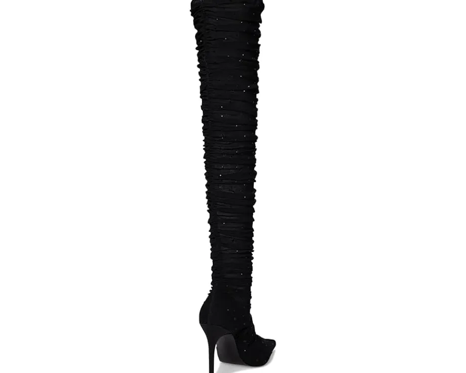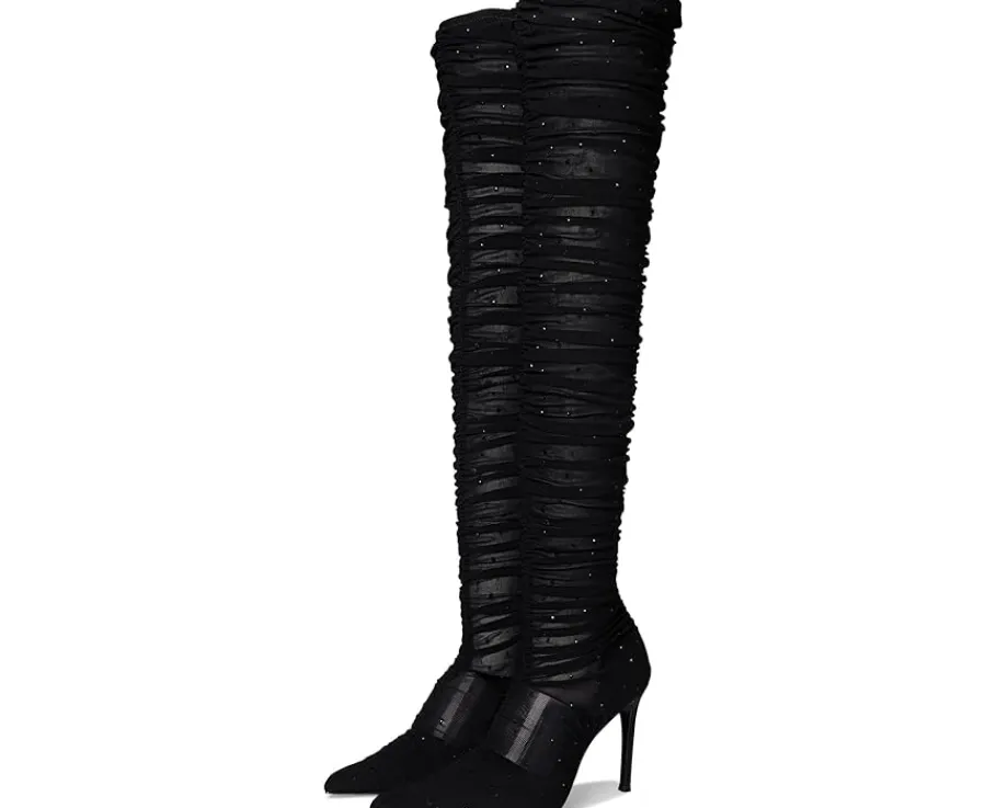 - Elevate your style with the Steve Madden® Rashida boot, featuring a sleek pointed toe and an over-the-knee silhouette crafted from breathable mesh. The slender stiletto heel adds height and sophistication, making this boot a perfect choice for a refined, fashion-forward look.