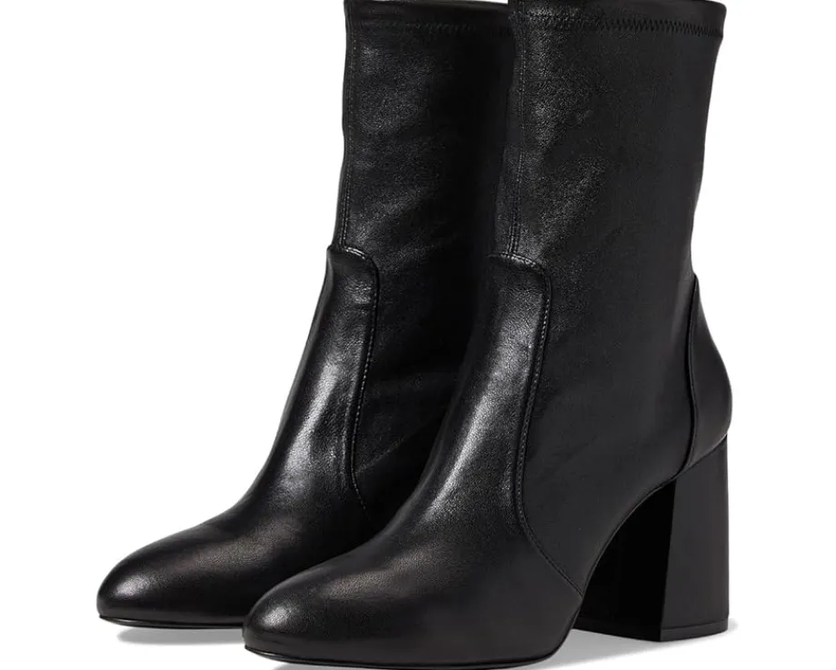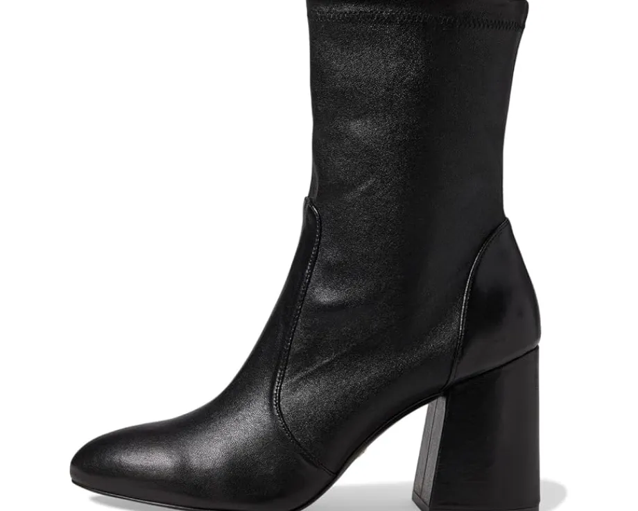 - Take every stpe in the most stylish way wearing the uber-stylish Stuart Weitzman® Flareblock 85 Stretch Bootie. The mid-calf length boots feature an almond toe shape, block heel and easy pull-on style. Crafted with a leather upper, leather and textile lining and insole, these boots are a smrt addition to your shoe collection.