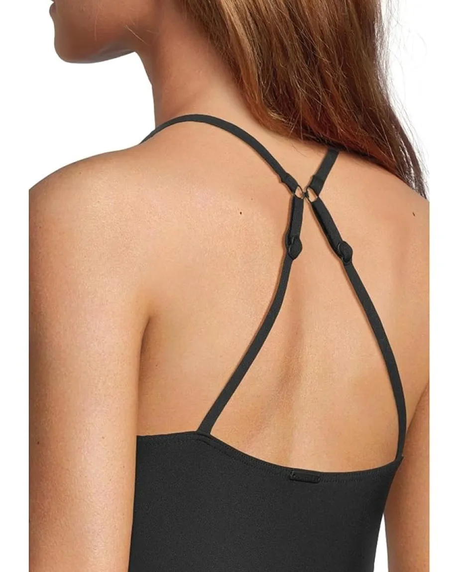 - A sleek little one-piece is always the right answer. This one piece is perfect for lying by the pool or diving in-you’ll want to take this bad boy on every summer trip. featuring a double crossback, adjustable straps, and a low v-neck. other features include a hidden shelf bra with picot elastic, removable cups, a j-hook that enables the straps to convert to a crossback, and matching lining.