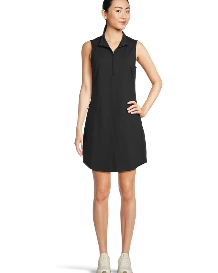 - The Tommy Bahama® Aubrey Zip Mock Dress features a sleek, sleeveless silhouette with a sporty half-zip mock neckline that adds a modern edge. Designed with side pockets for functionality and a flattering A-line shape, it’s finished with a wrinkle-resistant structure that maintains its polished look throughout the day.