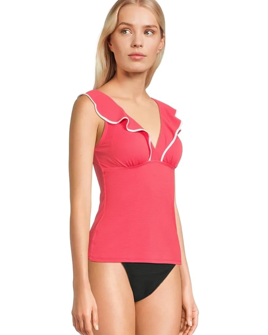 - Featuring a pique fabrication and solid construction, the Tommy Bahama® Island Cays Cabana Ruffle Tankini gives your beachy look a stylish update. The tankini features a plunging V-neckline with ruffle details, adjustable over the shoulder straps, tummy control, and a staright hem.