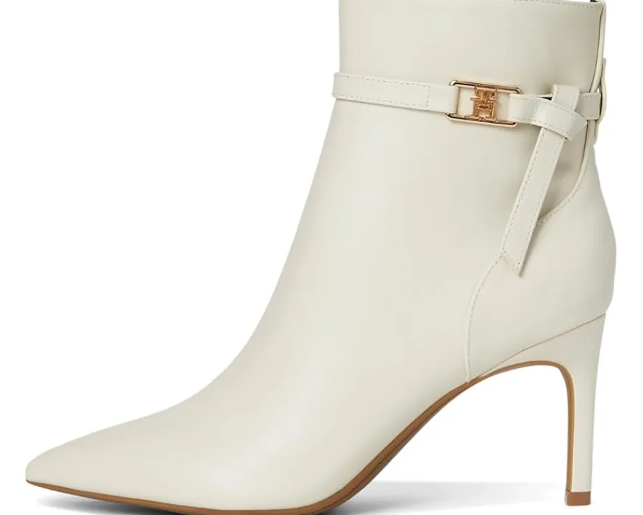 - The Tommy Hilfiger® Jorine with a delicate ankle strap and signature logo hardware emboldens a sleek dress bootie balanced by a pointy toe and tapered heel. Est. 1985, Tommy Hilfiger is a leading lifestyle brand celebrating the essence of American style.