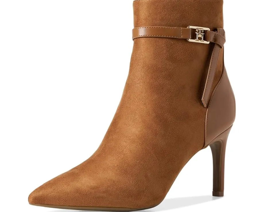 - The Tommy Hilfiger® TWJORINE2-DRE01 with a delicate ankle strap and signature logo hardware emboldens a sleek dress bootie balanced by a pointy toe and tapered heel. These stylish boots feature chic faux suede upper and smooth polyester lining for all-day comfort. With leather insole and trendy stiletto heels, you’ll feel both stylish and supported from day to night. Est. 1985, Tommy Hilfiger is a leading lifestyle brand celebrating the essence of American style.