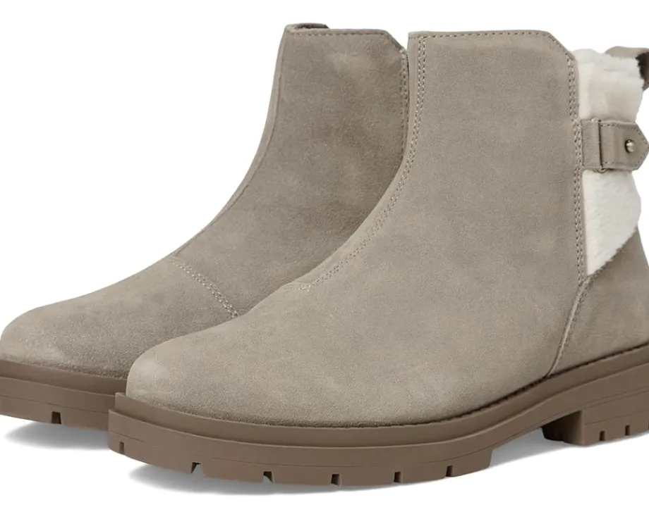 - Complement your chilly weather wardrobe with the TOMS® Astrid boots. Crafted from a suede upper, these lug boots offer a decorative strap with a decorative knit gore or faux shearling, pull tab for easy on and off, polyester lining, and custom CloudBound™ foam insoles for all-day comfort and support.
