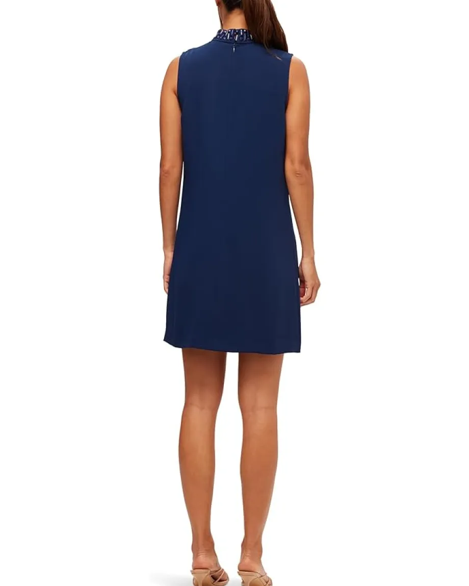 - Own the spotlight in the Trina Turk™ Sharapova Dress-a head-turning blend of elegance and effortless charm. This chic sleeveless shift silhouette drapes beautifully, giving you a flawless fit that’s both timeless and modern. The dazzling beaded mock neckline adds a statement touch, while the mid-thigh length keeps it playful yet sophisticated. A sleek zippered back closure ensures a seamless look from every angle, making it perfect for cocktail parties, date nights, or any occasion that calls for bold, confident style.