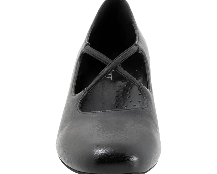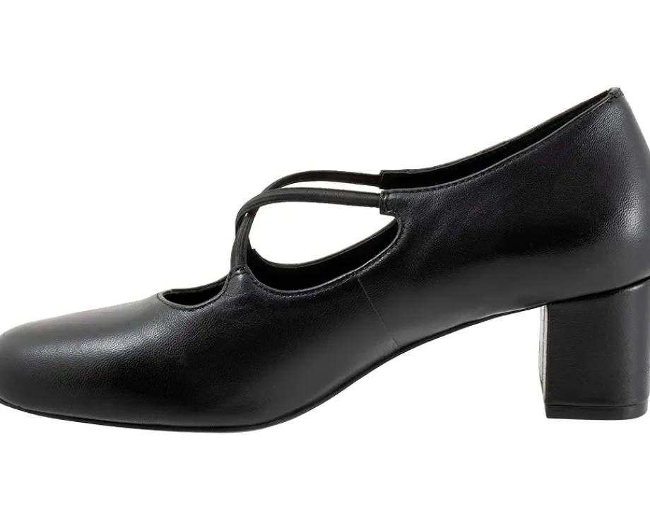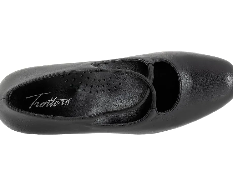 - Exclusively brighten up your night look wearing the Trotters® Demi. This pair of heels is designed with a crossover strap, block heel, and brand name embossed on the footbed. It also has a soft man-made nappa upper and a cushioned footbed with arch support.