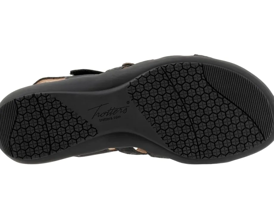 - Lightweight, Trotters® Tiki Tool will surely fit your style and comfort requirements. These open round toe design flats feature brand detailing on the footbed, adjustable hook-and-loop closure, and soft leather upper. The sandal has breathable leather lining.