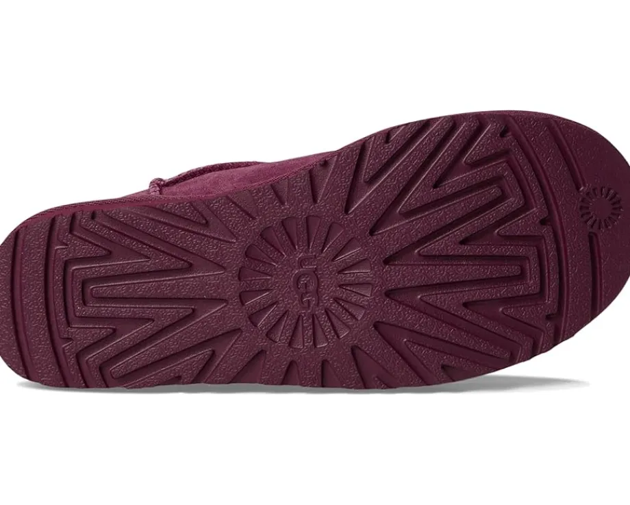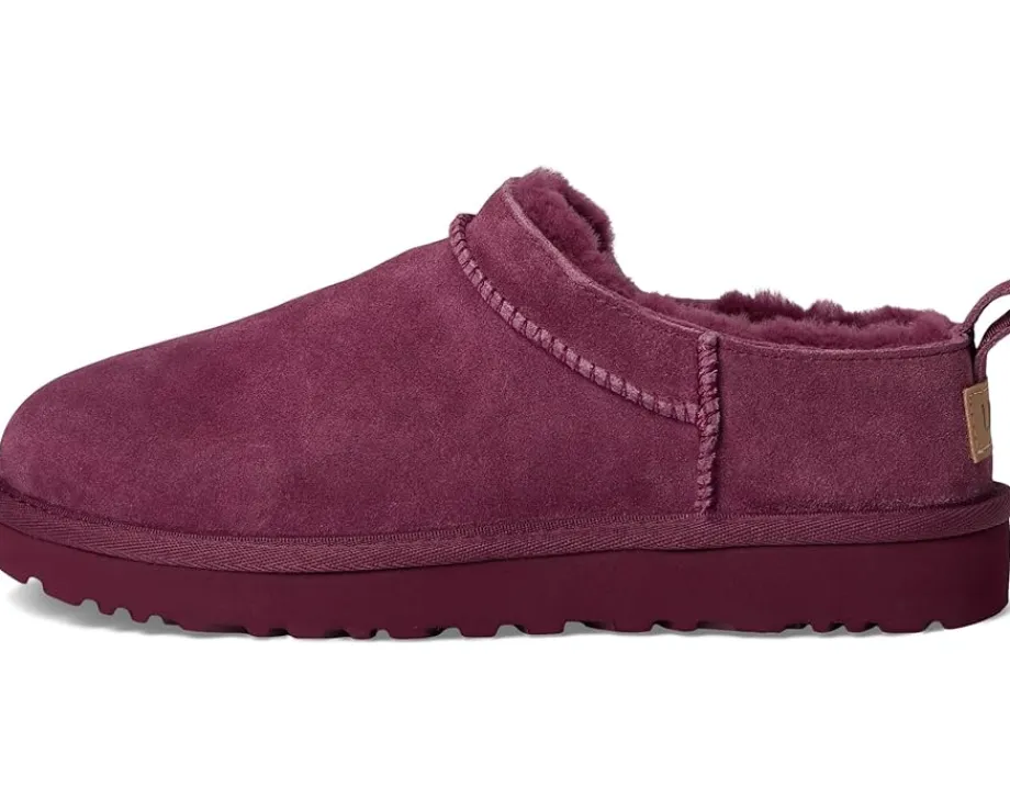 - The UGG® Classic Micro boots reimagine the fan-favorite classic boots with a new, low-profile design (and high-profile comfort). They have a genuine suede upper lined with soft fur lining and an insole that naturally regulates temperature, so you can wear socks – or not. Their lightweight sugarcane ethylene vinyl acetate outsole delivers effortless support and adds that easy slipper feeling to every out-of-the-house venture. These slip-on boots feature textile binding made from 100% recycled polyester fibers. Styled with a woven label with the UGG® logo on the insole and a UGG®-logo-embossed leather heel label, these ankle boots keep your feet comfortable, warm, and protected. While the Micro retains the strong DNA of the Classic boot, it’s fit will be closer to that of a Tasman than a Classic boot.
